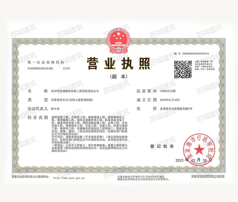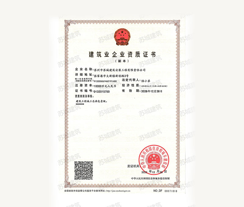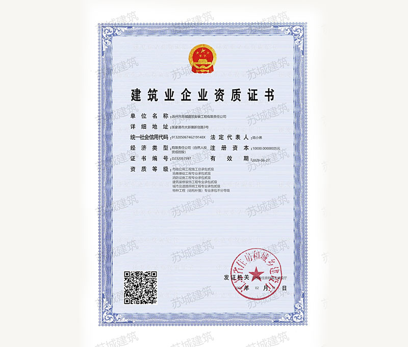 蘇州市蘇城建筑安裝工程有限責(zé)任公司,擁有主項(xiàng)建筑工程施工總承包一級(jí)資質(zhì),增項(xiàng)市政公用工程施工總承包二級(jí)資質(zhì)和建筑裝修